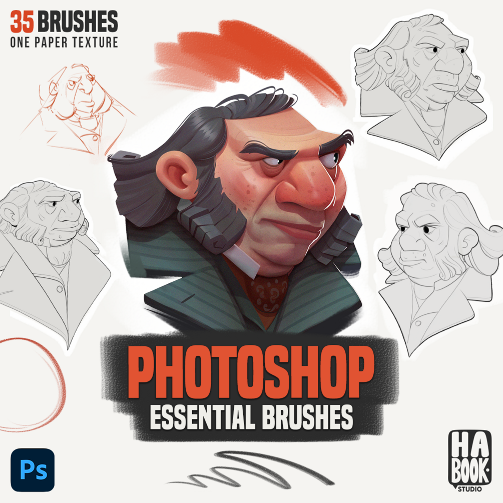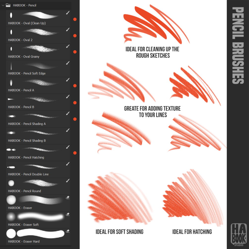• 14 Pencil Brushes: Perfect for sketching, detailing, adding texture, and cleaning up the line art.